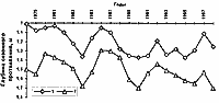 Рис. 3. Изменение температуры вечномерзлых пород на глубине 10 м на стационаре Марре-Сале (Западный Ямал)... В качестве наглядного примера происходящих термических изменений в криолитозоне используем данные наблюдений стационара Марре-Сале (Западный Ямал), расположенного на участке одноименной метеостанции. Здесь почти на всех экспериментальных площадках зафиксировано повышение температуры мерзлых пород на глубине 10 м за 1979-1998 годы (рис. 3). Оно изменялось от 0,1 до 1 градуса Цельсия. Только в полосе поверхностного стока воды (площадка 34) многолетние изменения температуры пород практически не отмечались. По результатам геотермических исследований обнаружено, что современное потепление пород достигает глубин в десятки метров. Рассмотрение материалов наблюдений того же стационара Марре- Сале показывает, что несмотря на большие междугодовые вариации глубины сезонного протаивания, в целом обнаруживается слабая тенденция к ее возрастанию за 1978-1998 годы (рис. 4). Прогнозируемая глубина сезонного протаивания на 2020 год возрастет на Севере всего на 15-20 см в песках, а в супесях, глинах и торфах еще меньше. Прогнозируемые региональные повышения температуры поверхности пород не превысят 1,4 градуса Цельсия на 2020 (2025) и 2,3 градуса Цельсия на 2050 год (таблица).