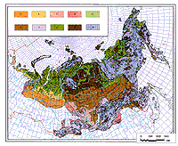 Рис. 5. Вероятные изменения вечной мерзлоты в России при потеплении климата к 2020 и 2050 гг... При составлении карты-схемы (см. рис. 5) учитывалось, что на одинаковые изменения глобального климата вечная мерзлота в разных ландшафтных условиях будет реагировать по-разному. Наибольший вклад в разнообразие реакции мерзлоты на атмосферные воздействия вносит рельеф земной поверхности. На карте показаны три категории рельефа: равнины, плоскогорья и горы. Первая с юга зона - это территории, на которых вечная мерзлота к 2020 году будет оттаивать сверху повсеместно, где она развита. Эта зона сформируется только в пределах Западно-Сибирской низменности, на южном пределе современной криолитозоны. Здесь в настоящее время встречаются редкие острова-линзы вечномерзлых пород с температурой выше -0,5 градуса Цельсия, приуроченные к торфяникам. После их оттаивания южная граница криолитозоны отступит к северу на 300 км и более, таяние вспученных льдом торфяников будет сопровождаться интенсивными просадками их поверхности, но серьезных изменений в природную обстановку и деятельность человека это не внесет: вечномерзлые торфяники встречаются редко и в хозяйственную деятельность практически не вовлечены. Вторая зона - территории, где вечномерзлые породы будут повсеместно таять к 2050 году. На севере европейской части России криолитозона к этому времени отступит в северном или северо-восточном направлении на 50-100 км, в Западной Сибири - на 100- 250 км, на юге Среднесибирского плоскогорья - на 600 км. В горах изменения криолитозоны будут минимальными: острова вечномерзлых пород будут оттаивать повсеместно только на Енисейском кряже и в небольшой части гор Южной Сибири и юго-восточного Забайкалья. Как и в предыдущей зоне, последствия оттаивания мерзлых пород окажутся незначительными: исчезнут острова и небольшие массивы мерзлых пород в самых неудобных для человека урочищах - торфяниках, на сильно замшелых участках тайги, на затененных днищах узких, глубоких долин, на склонах северной экспозиции. Современная температура этих пород не ниже -1 градуса Цельсия. Третья зона объединяет территории, где к 2050 году глубокое оттаивание вечномерзлых пород начнется не повсеместно. Современная температура вечномерзлых пород здесь меняется в основном в пределах от -1 до -5 градусов Цельсия. Оттаивать будут только малольдистые породы с температурами не ниже -1...-1,5 градуса Цельсия. Это преимущественно пески и скальные породы. Ширина зоны частичного оттаивания вечномерзлых пород на севере европейской части России достигнет 30-100 км, на севере Западной Сибири - 40-200 км, в Восточной Сибири - 240-820 км. Зона включает в себя также часть низких гор Южной Сибири, Забайкалья, юга Дальнего Востока и Камчатки до 60-62 градусов северной широты. В четвертую зону, зону относительно стабильных вечномерзлых пород, входит северная часть криолитозоны с самыми низкими температурами пород - от -3 до -16 градусов Цельсия. Мощность их измеряется сотнями метров. При прогнозных масштабах потепления климата глубокое протаивание мерзлых пород на этой территории исключается. Незначительно увеличится лишь площадь таликов. Таким образом, на основе вышеприведенных данных можно сделать вывод об изменениях криолитозоны России к середине XXI века. Через 50 лет температура поверхности грунтов повысится на 0,9-2,3 г