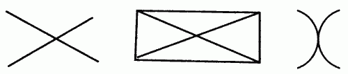 Говорят, особенно в наше время, что математику нужно применять всюду, даже в истории. Допустим. Но обыкновенный счет для наших целей ничего не дает, потому что нам считать нечего и незачем. Попробуем применить другое – математическую методику, пусть даже самую элементарную. Например, представим себе, что цель наших поисков – место Хазарии в пространстве и времени – точка, которую нужно нанести на план. Как известно, точка – это место пересечения двух линий или встречи четырех углов. На чертеже это выглядит так:
