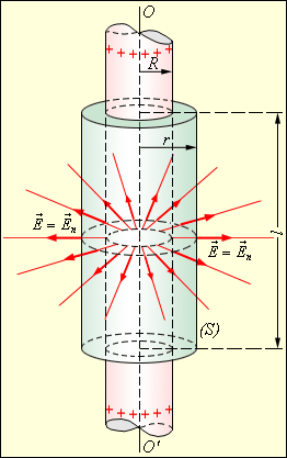При r ≥ R весь поток вектора напряженности будет проходить через боковую поверхность цилиндра, площадь которой равна 2πrl, так как поток через оба основания равен нулю. Применение теоремы Гаусса дает: