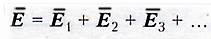 Если в данной точке пространства различные электрически заряженные частицы 1, 2, 3... и т.д. создают электрические поля с напряженностью Е1, Е2, Е3... и т.д., то результирующая напряженность в данной точке поля равна геометрической сумме напряженностей.