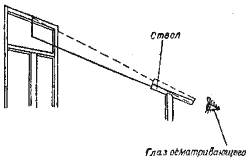 Изгиб ствола у винтовок и автоматов - явление довольно частое. Собственно, речь идет о непрямолинейном канале ствола. Такая непрямолинейность возникает не только при деформациях готового ствола, но даже в процессе его изготовления. Изгибы стволов встречаются и на боевом оружии, и на малокалиберных винтовках. Явление это нежелательное, ибо при незначительном пологом изгибе ствола ухудшается кучность боя, а при значительном ствол может разорвать. Изгиб ствола определяется осмотром очертаний теней в канале ствола с казенной и дульной частей. Для этого надо тщательно прочистить и протереть канал ствола, поместить ствол на деревянную подставку, направить его одним концом (например, дульным) на источник рассеянного света (окно) и осмотреть. При этом глаз осматривающего должен быть расположен на расстоянии 5-7 см от другого конца ствола (схема 149). При осмотре постепенно поднимать обращенный к источнику света конец ствола до тех пор, пока в канале ствола не станет видной тень переплета оконной рамы. Поворачивая ствол вокруг оси, выявить очертания тени. Для исследования другой половины ствола повернуть его к источнику света другим концом (казенной частью). Если ствол не изогнут, то при его вращении вокруг оси на 360° тень в канале ствола должна быть похожа на форму равнобедренного треугольника с основанием, обращенным к осматривающему (А на схеме 150).
