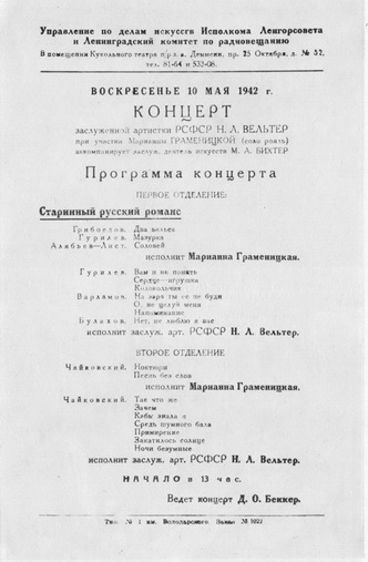 Весной сорок второго программки в Ленинграде печатались даже для рядового камерного концерта.