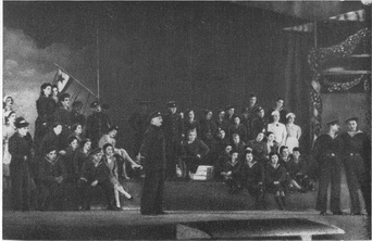 «Русские люди» К. Симонова – первый спектакль Блокадного театра. На сцене И. Горин, М. Павликов и Н. Левицкий.