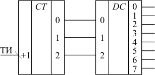 (Задание намба ван на билете) Р еализация датчика сигналов на основе счетчика с дешифратором представлена на рисунке. По заднему фронту каждого тактового импульса, поступающего на устройство управления с системного генератора импульсов, счетчик увеличивает свое состояние