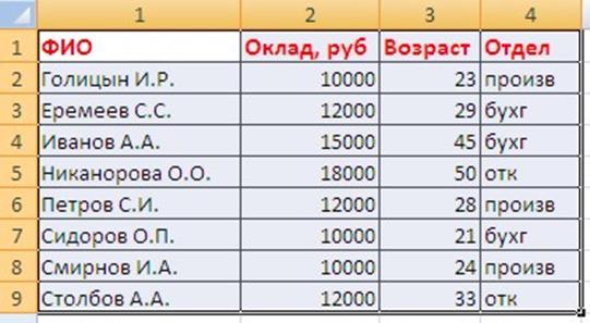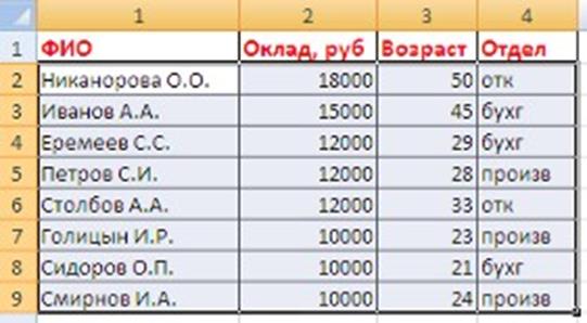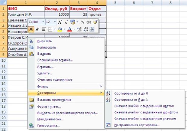Выберите "Сортировка от А до Я". Наш список будет отсортирован по первому столбцу, т.е. по полю ФИО.