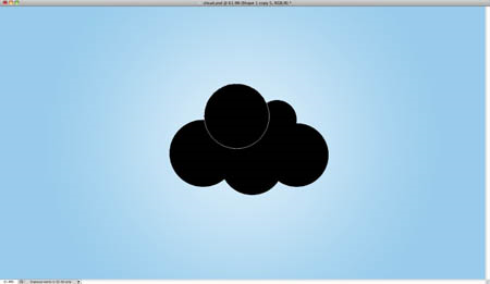 Шаг 6. Чтобы закончить форму облака, добавим последний круг, на этот раз больший, чем предыдущий. Сгруппируйте слои с кружками и сделайте дубликат группы. Затем идём в меню Слои – Объединить слои (Layer-Merge Layers), чтобы объединить слои в дубликате группы, и получить один объединённый слой. Теперь у нас есть один слой с облаком, но группа с кругами нам ещё будет нужна немного позже.