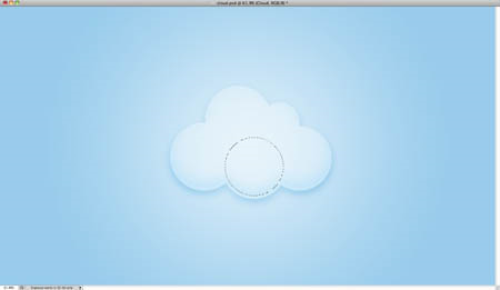 Шаг 13. Теперь нам нужно добавить облаку глубину. Мы будем использовать круги, которые остались в оригинальной группе. Создадим новые слои с такими же стилями слоя, как и у облака, таким образом, мы добавим некоторый объём. Для начала уменьшите Непрозрачность (Opacity) слоя с облаком до 30%. Теперь создайте выделение одного из кругов, затем выберите слой с облаком и дублируйте его. Перейдите в меню Слои – Слой маска – Показать выделенную область (Layer -Layer Mask- Reveal Selection). Переместите этот новый слой под слой с облаком.