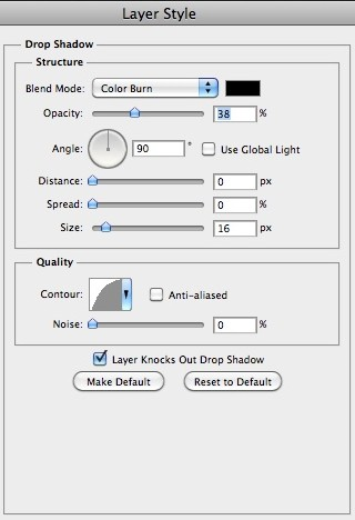 Шаг 11. Последним стилем слоя будет Тень (Drop Shadow). С точки зрения реализма, тень здесь будет лишней, но тень должна дать некоторый контраст между облаком и фоном, поскольку они используют одни и те же цвета.