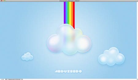 Шаг 20. Дублируйте облако дважды. Измените размер копий и Отразите их по горизонтали (Flipp Horizontall), используя комбинацию клавиш Ctrl+T. Обратите внимание, что автор не дублировал слой с цветами радуги.