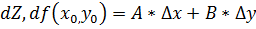 Частная производная 2–го или более высокого порядка, взятая по нескольким различным переменным, называется смешенной частной производной. Справедлива теорема: Две смешанные частные производные одной и той же функции, отличающиеся лишь порядком дифференцирования, равны между собой при условии их непрерывности. Так, Полный дифференциал и его применение в приближенных вычислениях. Полное приращ ф-ции Если полное приращ ф-ции Гл часть В ф-ле (1) A и B – const, Дифференциал ф-ции: Теорема. Дифференциал ф-ции