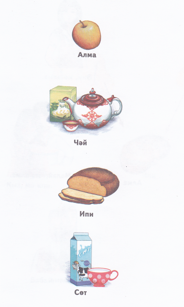 Ребёнок: алма- яблоко.