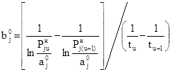 Чтобы установить температурную зависимость равновесного парциального давления j-того вещества, представим его относительное приращение aju как отношение энергетического барьера bj, создаваемого силами межмолекулярного взаимодействия в жидкости, к квадрату отклонения1 от него средней собственной энергии молекул mj, приходящегося на единицу температуры в интервале от tu до tu+1: