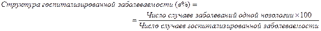 Выводы: на каждые 100 работающих приходиться 15 случаев заболеваний органов кровообращения и 226 дней повлекших за собой не выход на работу. Средняя длительность одного случая нетрудоспособности составила 15 дней. Госпитализированная заболеваемость – частота всех случаев заболеваний, зарегистрированных у выбывших больных из стационара за данный год (на 1000 населения). Единица наблюдения – случай основного заболевания выбывшего больного из стационара (выписанного или умершего). Учетные документы – «Статистическая карта выбывшего из стационара», «История болезни».