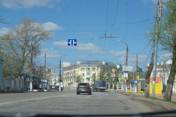 4) Далее едем прямо метров 100 – 150 до поворота направо на Бежецк, Кимры и 1-е мая: