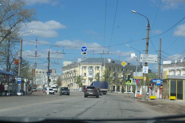 7) Далее на небольшой площади от полосатой трубы берем правее и выезжаем на улицу Пржевальского и едем прямо.