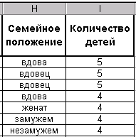 ЗАДАНИЕ 4. Провести двухуровневую сортировку БД, используя критерии: первичный - по убыванию количества детей; вторичный - по алфавиту групп семейного положения. Сценарий сортировки 1. Выделение диапазона ячеек, занимаемого исходной базой данных, перетаскиванием мышью или клавишным аккордом [Shift]+[Ctrl]+[End] (с предварительным позиционированием ячейки, содержащей имя поля Фамилия). 2. Выбор пунктов инструментального меню Данные/Сортировка... 3. Заполнение диалогового окна Сортировка диапазона согласно рис. 1.