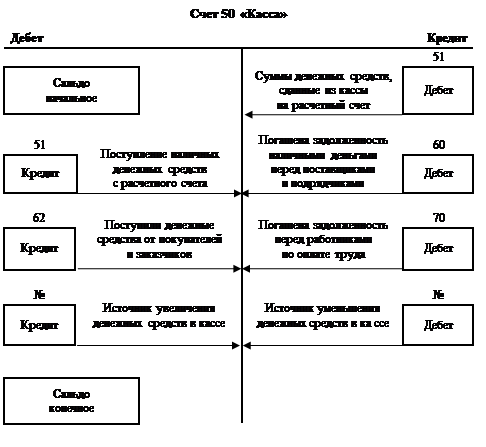 В ст. 15.1 Кодекса Российской Федерации об административных правонарушениях (КоАП РФ) определено, что нарушение порядка работы с денежной наличностью и порядка ведения кассовых операций, выразившееся: · в осуществлении расчетов наличными деньгами с другими организациями сверх установленных размеров; · неоприходовании (неполном оприходовании) в кассу денежной наличности; · несоблюдении порядка хранения свободных денежных средств, а равно в накоплении в кассе наличных денег сверх установленных лимитов, влечет наложение административного штрафа: - на должностных лиц в размере от 40 до 50 МРОТ; - на юридических лиц – от 400 до 500 МРОТ. В ст. 15.2 «Невыполнение обязанностей по контролю за соблюдением правил ведения кассовых операций» КоАП РФ установлено, что невыполнение должностным лицом учреждения банка обязанностей по контролю за выполнением организациями или их объединениями правил ведения кассовых операций влечет наложение административного штрафа в размере от 20 до 30 МРОТ. В соответствии со ст. 23.5 КоАП РФ дела об административных правонарушениях, предусмотренных ст. 15.1, 15.2, рассматривают налоговые органы. 12.5. Счет 50 «Касса» Для учета наличия и движения денежных средств в кассе предприятия используется активный счет 50 «Касса». Сальдо счета указывает на наличие суммы свободных денег в кассе предприятия на начало месяца; оборот по дебету – суммы поступившие наличными в кассу, а по кредиту – суммы, выданные наличными. Для учета кассовых операций в бухгалтерии ведут специальные регистры: журнал-ордер № 1 и ведомость № 1 по счету 50 «Касса». В журнале-ордере № 1 кассовые операции записываются по кредиту счета 50 «Касса». Основанием для заполнения журнала-ордера № 1 и ведомости № 1 служат отчеты кассира. Каждому отчету в регистре отводится одна строка независимо от периода, за который составлен кассовый отчет. Количество занятых строк в журнале должно соответствовать количеству сданных кассиром отчетов. Однако при незначительном количестве кассовых документов допускается записи операций в регистры производить не ежедневно, а за 3 – 5 дней, в целом по нескольким отчетам кассира. В этом случае в графе «Дата» указываются начальные и конечные числа, за которые производятся записи, например: 1 – 3, 15 – 17 и т.д. Журнал-ордер № 1 (руб.)