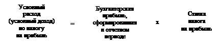 Налогооблагаемые временные разницы приводят к увеличению сумм налога на прибыль в последующих периодах. Отложенные налоговые обязательства признаются в том отчетном периоде, когда возникают налогооблагаемые временные разницы, и отражаются в учете: Дебет счета 68 «Расчеты по налогам и сборам», Кредит счета 77 «Отложенные налоговые обязательства». Текущий налог на прибыль – обязательство, равное неоплаченной величине налога на прибыль, т.е. та сумма налога, которую следует уплатить в бюджет. Текущий налог на прибыль не отражается в учете какой-либо отдельной проводкой. Его величина формируется на счете 68 посредством корректировок отраженного по этому счету условного расхода по налогу на прибыль (т.е. налога на прибыль, исчисленного исходя из бухгалтерской прибыли). Условный расход (условный доход) по налогу на прибыль равняется величине, определяемой как произведение бухгалтерской прибыли, сформированной в отчетном периоде, на ставку налога на прибыль.