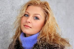 Ella es rubia y tiene los ojos azules. Ella tiene el pelo castaño y ojos azules. ¿O verdes?)