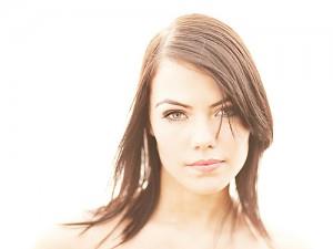 Ella tiene pelo castaño y ojos azules. Esto es un ojo azul.