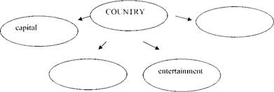 When people think of a foreign country they picture in their minds different things. What do you usually think of when you think of a country? 1) Make a list of things. Compare your list with your partner's. 2) Complete the Word Web.
