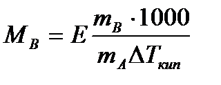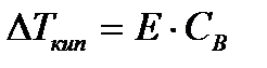 Е – коэффициент пропорциональности, численно равный повышению температуры кипения раствора, содержащего 1 моль растворенного вещества в 1000г растворителя, при условии, что раствор этой концентрации обладает свойствами идеального. Такое повышение температуры кипения называется молярным или эбуллиоскопической постоянной. Величина Е зависит только от свойств растворителя и может быть найдена либо опытным путем, либо рассчитана по термодинамическому соотношению