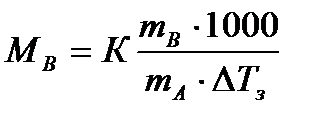 Это и есть математическое выражение второго закона Рауля: понижение температуры замерзания или повышение температуры кипения растворов прямо пропорционально его моляльной концентрации. Коэффициент К в уравнении (7) носит название криоскопической постоянной, показывает молярное понижение температуры замерзания раствора, является индивидуальной характеристикой растворителя (КН2О=1,86º) и имеет ту же размерность, что и Е (Кº·кг·моль-1) Метод исследования, основанный на измерении понижения температуры замерзания растворов, называется криоскопическим. Он также, как и эбуллиоскопический позволяет вычислить молярную массу растворенного вещества