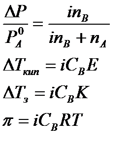 υ – количество ионов, на которое диссоциирует одна молекула электролита. Используя коэффициент i, можно применять закон Рауля, его следствия и законы осмотического давления к растворам электролитов:
