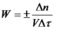 Скорость химической реакции определяется числом молекул, реагирующих в единицу времени в единице объема. Так как это число эквивалентно изменению количества вещества (исходного или продукта), то можно записать: