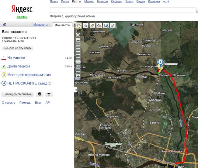 Дорога для тех, кто будет добираться на автомобиле. Ссылка на Яндекс карте: http://maps.yandex.ru/?um=1EMzGXGj9JCSQAJagjzMd718RJgOckCO&l=sat%2Cskl Координаты моста на Яндекс карте: Широта: 56°56′36.05″N (56.943346) Долгота: 35°53′10.21″E (35.886169)