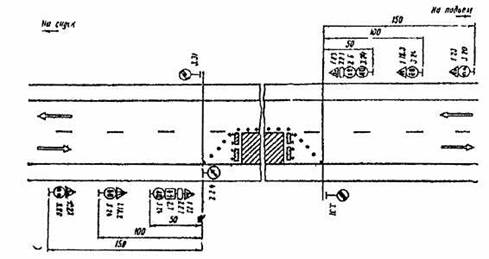 3.32. Если дорожные работы ведутся на кривых с закрытой видимостью (внених по отношению к горному склону) и большой протяженности ремонтируемого участка (более 60 м), движение организуют с помощью регулировщиков или устраивают светофорное регулирование, при этом длительность желтого сигнала рассчитывают исходя из времени, необходимого для освобождения транспортным средством зоны работ. 3.33. На участках в горной местности с большими продольными уклонами допустимая протяженность ремонтируемого участка в случае саморегулирования движения в зоне ремонтных работ устанавливается с учетом интенсивности движения (табл. 3.2). 3.34. В целях повышения безопасности движения и улучшения зрительного восприятия дорожных знаков их следует размещать вне кривых в плане с закрытой видимостью, увеличивая при необходимости расстояние от места их установки до начала участка дорожных работ. Date: 2015-09-17; view: 311; Нарушение авторских прав |