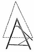 Рис. 4.1. Переносная опора для временного дорожного знака 4.6. В плане дорожные знаки надо размещать так, чтобы от края проезжей части до ближайшего к ней края знака было не менее 0,5 м. Размеры переносных опор должны соответствовать размерам используемых дорожных знаков. Элементы опоры не должны выступать за боковые края знака более чем на 20 см. 4.7. Условия применения дорожных знаков, наиболее, часто используемых при производстве дорожных работ, изложены в пп. 4.8-4.24 настоящей Инструкции. 4.8. Дорожные знаки или группы знаков необходимо располагать друг от друга на расстоянии не менее 50 м. Первым по ходу движения необходимо устанавливать знак 1.23 “Дорожные работы”. Этот знак с табличкой 7.2.1 должен повторяться не менее чем за 50 м до начала места проведения работ. В населенных пунктах и в стесненных условиях повторный знак 1.23 с табличкой 7.2.1 “Зона действия” можно устанавливать непосредственно у начала места работ. 4.9. Знак 1. 15 “Скользкая дорога” применяют, когда возможна повышенная скользкость проезжей части по сравнению с предшествующим участком, вызванная проводимыми работами (например, в результате подгрунтовки ремонтируемого покрытия жидким битумом или дегтем, выноса глины и грязи с прилегающих дорог, по которым устроен объезд маршрута). 4.10. Знак 1.17 “Выброс гравия” устанавливают при устройстве или ремонте гравийных и щебеночных покрытий, при поверхностной обработке покрытия и в случаях, когда возможен выброс гравия, щебня из-под колес автомобиля. Знак должен быть установлен на время производства работ до полного формирования покрытия. 4.11. Знаки 1.18.1-1.18.3 “Сужение дороги” служат для предупреждения водителей о сужении проезжей части или полотна дороги независимо от причин, вызвавших это сужение.