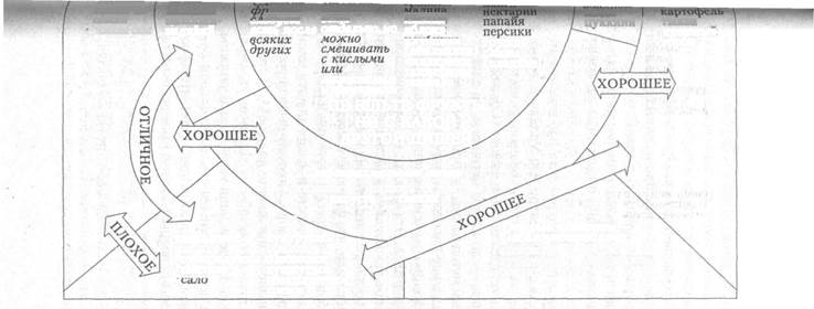 1. Протейный карбогидратыникогда не смешивайте. 2. Листовой зеленый салат можно есть с любыми протеинами, карбогидратами или жирами. 3. Жиры препятствуют перевариванию протеинов. Если вам приходится есть жиры с протеинами, добавьте смешанный овощной салат. 4. Никогда не пейти жидкости во время или сразу же после еды. * Перечислены в качестве пояснения, а не для рекомендации. - сокращен на 60%; а третья группа ела столько, сколько хотела, но потребление протеинов было сокращено наполовину. Как вы думаете, что произошло? Спустя 810 дней только 13% из первой группы остались живы. Во второй группе, где потребление пищи было сокращено на 60%, 97% крыс были живы. В третьей группе, где потребление пищи оставалось высоким, но протеины были уменьшены наполовину, 50% подопытных животных были еще живы. Можно ли из этого эксперимента извлечь что-нибудь полезное для себя? Доктор Рэй Уолфорд, знаменитый исследователь из Калифорнийского университета в Лос-Анджелесе, сделал такой вывод: «Сокращение пищевого рациона — до настоящего времени единственный надежный метод из тех, которые мы знаем, вызывающий замедление процессов старения и способствующий достижению максимального срока жизни теплокровных животных. Эти выводы, несомненно, применимы и к людям, поскольку до настоящего времени срабатывали во всех видах исследованных животных»*. Исследования показали, что физиологическое старение, в том числе и обычные процессы старения и разрушения иммунной системы, существенно замедляется, если ограничить потребление пищи. Поэтому вывод прост и ясен: ешьте меньше — проживете дольше**. Я такой же, как и вы: я тоже люблю поесть. Для меня это было своего рода хобби. Но ведь ваши увлечения не должны убивать вас. Если вы хотите набить себе желудок, можете сделать это. Однако позаботьтесь о том, чтобы ваша пища была богата водой. Салатом вы можете насы- * Из раздела «Информационные новости» журнала «Иуэйк» ** Время приема пищи также очень важно. Лучше не есть непосредственно перед сном. Было бы прекрасно, если бы вы развили" в себе привычку не есть ничего, кроме фруктов, после 21.00.