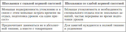 15.5. Стили учебной деятельности Разнообразная по содержанию и сложности умственная учебная деятельность приводит к появлению различных стилей интеллектуальной деятельности. Так, Ю. Н. Кулюткин и Г. С. Сухобская (1971) выделили три стиля эвристической деятельности: 1) мыслительный поиск, характеризующийся риском (выдвигаются смелые, не всегда обоснованные гипотезы, от которых быстро отказываются); 2) осторожный поиск (тщательно взвешивается каждое из оснований, проявляется высокая критичность, наблюдается замедленность продвижения в построении гипотезы); 3) выдвижение гипотез достаточно быстрое и обоснованное. Авторы показали, что быстрота и легкость выдвижения гипотез зависит от силы нервной системы и преобладания возбуждения над торможением (заметим, что обе эти типологические особенности входят в типологический комплекс решительности (И. П. Петяйкин, 1974). Выявлены разные стили восприятия литературных текстов. Г. В. Быстрова изучала особенности восприятия и понимания художественных текстов у лиц с различной силой нервной системы. Эмоциональное восприятие в этом случае, по ее данным, сильнее выражено у лиц с сильной нервной системой. Однако в исследовании Л. П. Калининского (1971) эти данные не получили подтверждения. Автор установил, что для лиц со слабой нервной системой характерны эмоциональность, изобразительность, более сложная структура синтаксиса письменной речи в изложении, интровертированная установка в осознании литературного текста. Лицам с сильной нервной системой свойственны обобщенные и описательные моменты в воссоздающем воображении, тенденция к употреблению менее сложных синтаксических конструкций, стремление избежать обилия различного рода определений и причастных оборотов, экстравертированная установка в осознании литературного текста. В то же время, по данным Д. Б. Богоявленской с соавторами (1975), обладающие слабой нервной системой более склонны к репродуктивной интеллектуальной активности, а сильной – к творчеству, к большей эвристической интеллектуальной активности. Л. А. Вяткина (1970) изучала стили решения инструментальных умственных задач, обследовав старших дошкольников: «Открой шкаф», «Достань ведро из колодца», «Открой ворота». У детей со слабой нервной системой большая часть условий задачи выделяется путем предварительной зрительной ориентировки, мысленный план действий создается до начала исполнения, в редких случаях дети делают одну‑две пробы. Для детей с сильной нервной системой характерно чередование зрительной ориентировки и исполнения. До исполнения создается неполная ориентировочная основа действия, которая уточняется в процессе решения задачи при помощи отдельных проб и коротких зрительных ориентировок. Таким образом, у «слабых» преобладает зрительная ориентировка, а у «сильных» – двигательная. А. К. Байметов (1967) выявил у старшеклассников три группы разных стилей учебной деятельности: связанные с различиями в динамике врабатывания в учебную деятельность и утомляемостью; обусловленные объемом умственной деятельности и влиянием напряжения. Таблица 15.1. Стилевые особенности, связанные с различиями в динамике врабатывания и утомляемости.