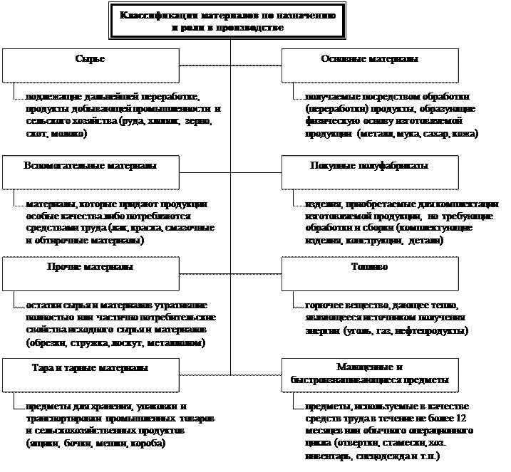 На современном предприятии используется большое количество разнообразных материалов и для надлежащей организации синтетического и аналитического учета необходима их группировка: · по назначению и роли в процессе производства; · по техническим свойствам. В зависимости от назначения и роли в процессе производства различают: сырье и материалы; покупные полуфабрикаты; топливо; тара и тарные материалы; запасные части; прочие материалы; строительные материалы. На каждую группу материалов открывают отдельный субсчет.