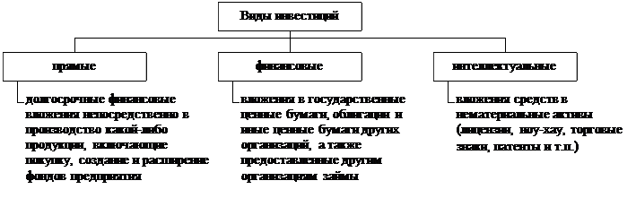 Основная цель любой коммерческой фирмы состоит в максимально возможном увеличении дохода ее владельцев. Вложения денежных средств, ценных бумаг, иного имущества, в том числе имущественных прав в реализацию различных проектов несут в себе задачу достижения определенных целей в зависимости от проводимой предприятием политики, Цели могут быть самыми различными: повышение рентабельности производственного процесса, замена устаревшего оборудования и, как следствие, повышение эффективности, расширение производства, увеличение доли рынка, технологический прорыв и т.д. Но при этом инвестиции должны выполнять два основных требования: во-первых, они должны быть возмещены и, во-вторых, прибыль от инвестиций должна компенсировать потери, связанные с временным отказом от использования денежных средств. В самом общем виде инвестиции определяются как денежные средства, банковские вклады, паи, акции и другие ценные бумаги, технологии, машины, оборудование, лицензии в том числе на товарные знаки, кредиты, любое другое имущество или имущественные права, интеллектуальные ценности, вкладываемые в объекты предпринимательской деятельности или других видов деятельности в целях получения прибыли. Для каждого предприятия важна разумная и целенаправленная инвестиционная деятельность Реализация инвестиционных проектов представляет собой новую и в недостаточной степени изученную сферу деятельности предприятий на российском рынке. Инвестиционный проект - это процесс осуществления комплекса взаимосвязанных действий, направленных на достижение определенных финансовых, экономических и социальных результатов. Основным инструментом реализации инвестиционного проекта является бизнес-план, который представляет собой технико-экономическое и финансовое обоснование эффективности инвестиций. По видам инвестиции делятся на прямые, финансовые и интеллектуальные, Прямые инвестиции это долгосрочные капитальные вложения непосредственно в производство какой либо продукции, включающие покупку, создание и расширение фондов предприятия. Финансовые инвестиции это вложения в акции, облигации и другие ценные бумаги, Интеллектуальные инвестиции это вложения средств в лицензии, ноу-хау, торговые знаки, франчайзинг, патенты (в нематериальные активы), совместные научные разработки. Пунктом 11 Положения по ведению бухгалтерского учета и бухгалтерской отчетности в Российской Федерации», утвержденного Приказом Минфина РФ от 29.07.98 № 34н, предусмотрено, что в бухгалтерском учете организации затраты, связанные с капитальными и финансовыми вложениями, учитываются раздельно.