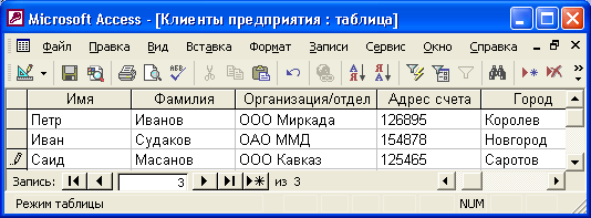 В любом случае на экране появится окно с содержимым таблицы (рис. 2.1).