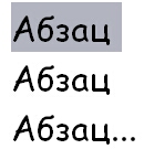 Рис 5.6. Выделение строк и абзаца Установите курсор в начало любого абзаца, нажмите клавишу и не отпуская ее нажмите клавишу Shift. Будет выделена первая строка абзаца (Рис. 5.6, слева). Все еще удерживая клавишу нажмите несколько раз клавишу Shift пока не будут выделены все строки абзаца (Рис. 5.6, справа). Теперь можно отпустить клавишу Иногда требуется выделить весь текст целиком. В этом случае установите курсор перед первым символом текста, нажмите клавишу и, не отпуская ее, несколько раз нажмите клавишу пока не будет выделен весь текст после чего отпустите клавишу С помощью нескольких описанных приемов вы можете выделять любой фрагмент текста. Для этого необходимо установить курсор в начало фрагмента, нажать клавишу и, не отпуская ее, переместить курсор в конец выделяемого фрагмента, после чего отпустить клавишу Существует также возможность выделения всего текста. Выделение всего текста осуществляется при одновременном нажатии клавиш и. Попробуйте самостоятельно выделить различные фрагменты текста. Следует отметить что если после выделения фрагмента текста вы нажмете клавишу или то весь выделенный фрагмент будет удален. При начале ввода любого текста если имеется выделенный фрагмент новый текст заменит старый. Так можно удалять и заменять целые блоки текста. Текст можно выделять и с помощью мыши. Чтобы выделить отдельное слово необходимо дважды щелкнуть на нем мышью. Если щелкнуть на слове трижды будет выделен целиком весь абзац. Если вы хотите выделить произвольный фрагмент текста необходимо выполнить более сложные действия. Сначала подведите указатель мыши к началу выделяемого текста. Затем нажмите кнопку мыши и не отпуская ее перемещайте указатель в сторону конца выделяемого фрагмента. По мере передвижения указателя текст будет выделяться. После того, как вы достигнете конца выделяемого фрагмента текста отпустите кнопку мыши. Текст между местом, на котором вы нажали кнопку мыши и местом где вы ее отпустили останется выделенным. Щелкнув мышью в произвольном месте вы снимете выделение. Для выделения больших фрагментов текста используются щелчки на левом поле документа, левее текста, которое называется полосой выделения. Подведите указатель мыши левее текста абзацев и он примет вид. Если указатель примет вид значит, вы не попали на полосу выделения. Установите указатель мыши на полосу выделения левее абзаца и щелкните мышью один раз. Одна строка текста, напротив которой находился указатель будет выделена. Не двигая мышь, щелкните дважды. Выделен будет уже весь абзац. Щелкните мышью трижды, и будет выделен весь текст. Возможно, тройной щелчок у вас не получится с первого раза. В этом случае попытайтесь еще раз выделить текст. Научившись выделять с помощью мыши произвольные фрагменты текста, вы существенно ускорите редактирование и форматирование документов. Помните, что мышь является основным инструментом в любой программе работающей под управлением Windows. После того, как вы научились выделять любые части текста, можно приступать к форматированию и начнем мы с форматирования символов. 5.6.2. Форматирование символов Форматирование символов заключается в задании их шрифта/ размера и начертания. Если всем ясно что такое размер (Рис. 5.7, в центре), то о шрифте и начертании следует рассказать более подробно.