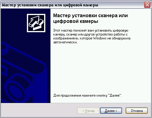 Рис 6.6. Первые диалоги мастера установки сканеров и цифровых фотокамер Нажмите кнопку Далее (Continue) для перехода к следующему диалогу мастера (Рис. 6.6). В нем вам предлагается выбрать из списка устанавливаемое устройство. В левой части диалога расположен список производителей. После выбора названия производителя оборудования следует выбрать конкретную модель в правом списке. Если же вы не найдете в списке свою модель, то, возможно, в комплекте с устройством находился диск с драйверами. В таком случае следует нажать кнопку Установить с диска (Have Disk) и ввести адрес драйверов в появившемся диалоге (Рис. 6.7), после чего нажать кнопку ОК для продолжения работы с мастером. Если точный адрес вам не известен, нажмите кнопку Обзор (Browse) и найдите искомые драйверы переходя по дискам и папкам компьютера. Если на прилагаемом к устройству диске система не обнаружит требуемых драйверов, то ваш сканер не удастся подключить с помощью мастера. В таком случае можно попробовать получить драйверы из Интернета, со страницы производителя оборудования, или установить поддержку, пользуясь руководством к сканеру или цифровой фотокамере. Однако если вы установите оборудование не с помощью мастера а иным способом, некоторые возможности поддержки таких устройств в Windows XP будут недоступны, например не будет работать мастер, облегчающий получение рисунков и фотографий. Возможно ваше устройство не поддерживается операционной системой Windows XP. В этом случае ничего сделать нельзя. Вам придется сменить устройство или сменить операционную систему. Напоминаем, что при покупке нового оборудования всегда следует интересоваться, работает ли оно в вашей операционной системе.
