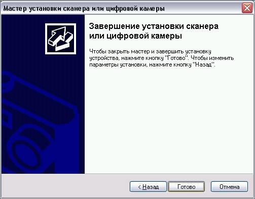 Рис 6.3. Выбор устройства для получения изображения Если вы выбрали для получения рисунка сканер то появится первый диалог мастера, содержащий приветствие и название выбранной модели сканера. Положите лист с нужным рисунком на стекло сканера и закройте крышку. Естественно для получения рисунка сканер должен быть включен. Нажав в диалоге кнопку Далее (Next), вы перейдете к основному диалогу мастера сканирования. Автоматически будет выполнено предварительное сканирование, и его результат будет виден в правой части диалога. С помощью переключателя в левой части диалога следует выбрать параметры получаемого изображения. Можно задать черно-белое или цветное сканирование различного качества. Вы также можете сдвинуть или заменить оригинал, лежащий в сканере. Для повторного предварительного сканирования следует нажать кнопку Просмотр (Preview). В поле предварительного просмотра можно ограничить область сканирования, перетащив с помощью мыши маркеры, расположенные по краям рамки ограничения рисунка. Чтобы лучше рассмотреть детали рисунка, следует воспользоваться кнопками под полем просмотра. Если вы нажмете кнопку, рисунок будет показан в своем истинном размере, без увеличения и уменьшения. Кнопка позволяет подогнать масштаб таким образом, чтобы рисунок занимал все поле предварительного просмотра и целиком помещался в нем. Нажав кнопку Настройка (Custom settings), вы откроете диалог более точной настройки параметров сканирования. В нем можно вручную настроить яркость и контрастность сканирования, а также задать нужное разрешение. Выполнив настройку, нажмите кнопку ОК, чтобы вернуться к предыдущему диалогу. В нем нажмите кнопку Далее (Next) для перехода к следующему диалогу мастера сканирования. В этом диалоге выбирается место для сохранения файла рисунка вводится его имя и выбирается формат файла в котором вы хотите сохранить отсканированное изображение. Также вы можете установить флажок для отправки рисунка в Интернет. Обратите внимание что рисунки могут сохраняться не в папке Мои рисунки (My Pictures), а в любой другой папке. При создании рисунка к указанному вами имени будет добавлен порядковый номер. Введя нужные значения в поля диалога, нажмите кнопку Далее (Next). После этого начнется процедура основного сканирования. Во время сканирования на экране будет отображаться диалог, показывающий ход выполнения этого процесса. По окончании сканирования появится завершающий диалог мастера. Нажмите кнопку Готово (Ready), диалог закроется а в нужной папке на жестком диске вашего компьютера появится новый графический файл, содержащий отсканированное изображение. Если вы выбрали для получения изображения цифровую камеру получить изображение будет еще проще. На экране появится окно, в котором будут расположены небольшие эскизы всех фотографий, находящихся в памяти камеры. Необходимо выбрать одну из фотографий, щелкнув на ней мышью, и нажать кнопку Получить (Get picture) в окне. Кроме того, вы можете в диалоге просмотреть некоторую дополнительную информацию о фотографиях, хранящихся в памяти фотокамеры например, узнать дату и время, когда они были сделаны. Для этого следует просто щелкнуть мышью на соответствующей ссылке, предварительно выделив интересующую вас фотографию. Вы также можете очистить память камеры, освободив ее для новых снимков. Полу