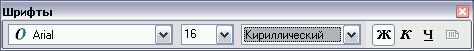 Рис 6.18. Панель выбора шрифта С помощью первого открывающегося списка в панели вы выбираете шрифт, во втором списке устанавливаете размер, а в третьем - язык. Кнопками вы выбираете начертание символов. Форматирование применяется ко всему вводимому тексту. Если вам надо создать надписи разного стиля, то необходимо вставить несколько фрагментов текста указав различное форматирование для каждого из них. Выбранный в панели вариант форматирования сохранится для всех вновь вводимых текстов. Date: 2015-09-17; view: 509; Нарушение авторских прав |