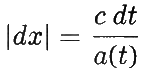 Левая часть этого уравнения задаёт расстояние, пройденное светом по статичной карте от момента излучения до настоящего момента. Чтобы перевести это в расстояние в реальном пространстве, необходимо перемасштабировать формулу с учётом современного масштабного фактора; поэтому полное расстояние, проходимое светом, будет равно