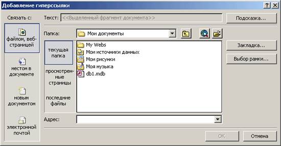 Рис. 6.23. Окно диалога добавления гиперссылки