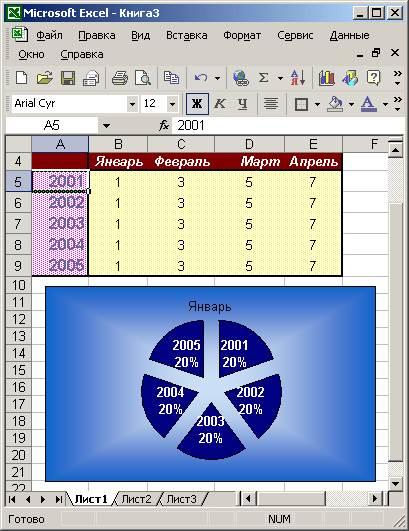 В списке Тип выберите пункт Вырезанные сектора (Pie Explosion). Щелкните на кнопке ОК.