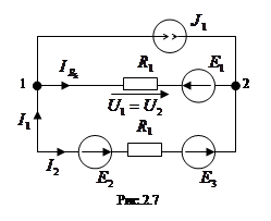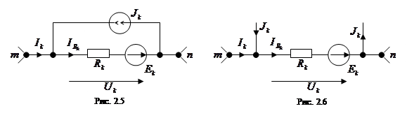 Формулы (2.2) и (2.3) представляют выражение закона Ома для узла цепи с источниками ЭДС и тока. Если ветвь содержит ряд последовательно соединенных сопротивлений, источников ЭДС и параллельно соединенных источников тока, то в (2.2) и (2.3) вместо Если схема цепи содержит
