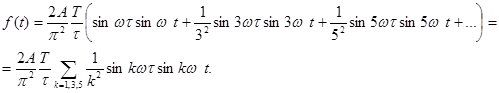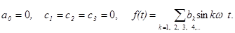 3. Кривая симметрична относительно начала координат, f(t)=-f(-t) (рис. 7.5). В этом случае Пример. Кривая симметрична относительно оси абсцисс, поэтому сразу можно сказать, что ряд Фурье будет состоять из нечетных гармоник.