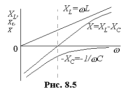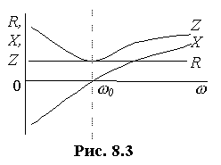 Зависимости полного и реактивного сопротивлений цепи и угла сдвига между током и напряжением от частоты приведены на рис. 8.3, рис. 8.4.