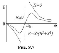 При R =0 следует Полюса наблюдаются при w = w 0 (В =¥) (рис. 8.7). Нули наблюдаются при w =0 и w =¥ (В =0) (рис. 8.8).