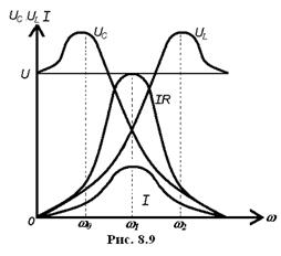 т.е. В уменьшается при 0< w <¥. Определим ток в цепи и напряжения на реактивных элементах